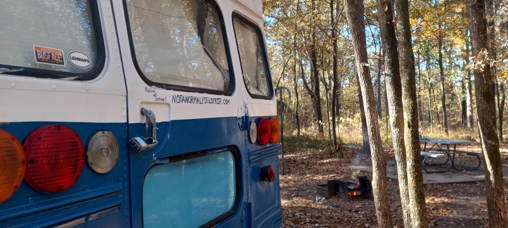 We all took showers at the campground so we feel squeaky clean and ready for many more miles! It was nice to have a space that was “ours” even just for a night. We’ve been blessed to not have had any middle-of-the-night issues with security knocking on the door or anything, but when staying on public property, it could happen. We are very careful about reading signs,  checking reviews, and staying where there are other RVs or trucks spending the night. The only place we’ve been kicked out of is a gas station today – we pulled over to top off our oil because we have a leak, but the gas station was closed. We figured that would be a good place as we weren’t blocking any pumps. In the 5 minutes it took us to pop the “camel hump” open and dump in 2 cups of oil, an employee came out and told us they were closed. Jeff held up the oil bottle he had in his hand and said we were just topping off our oil and the guy told us to vacate the premises immediately. Jerk. Anyway, we got the oil filled and then left. We’ve been using a popular conventional oil that the mechanic suggested for this engine and thankfully we can pick it up in 2 gallon jugs at any chain auto parts store! We grabbed a couple more bottles tonight just in case, and we are good to go!