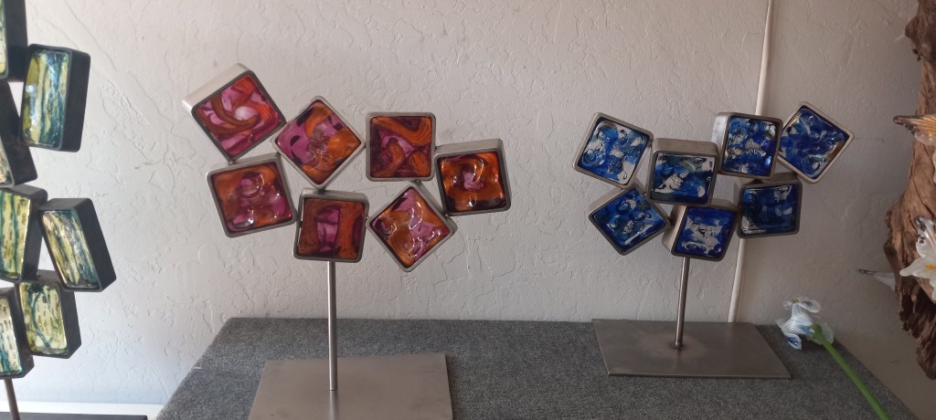 Jeff has been doing a lot of welding for the Glass Artist. He got some pictures of the finished projects to include and he can explain a little about them.