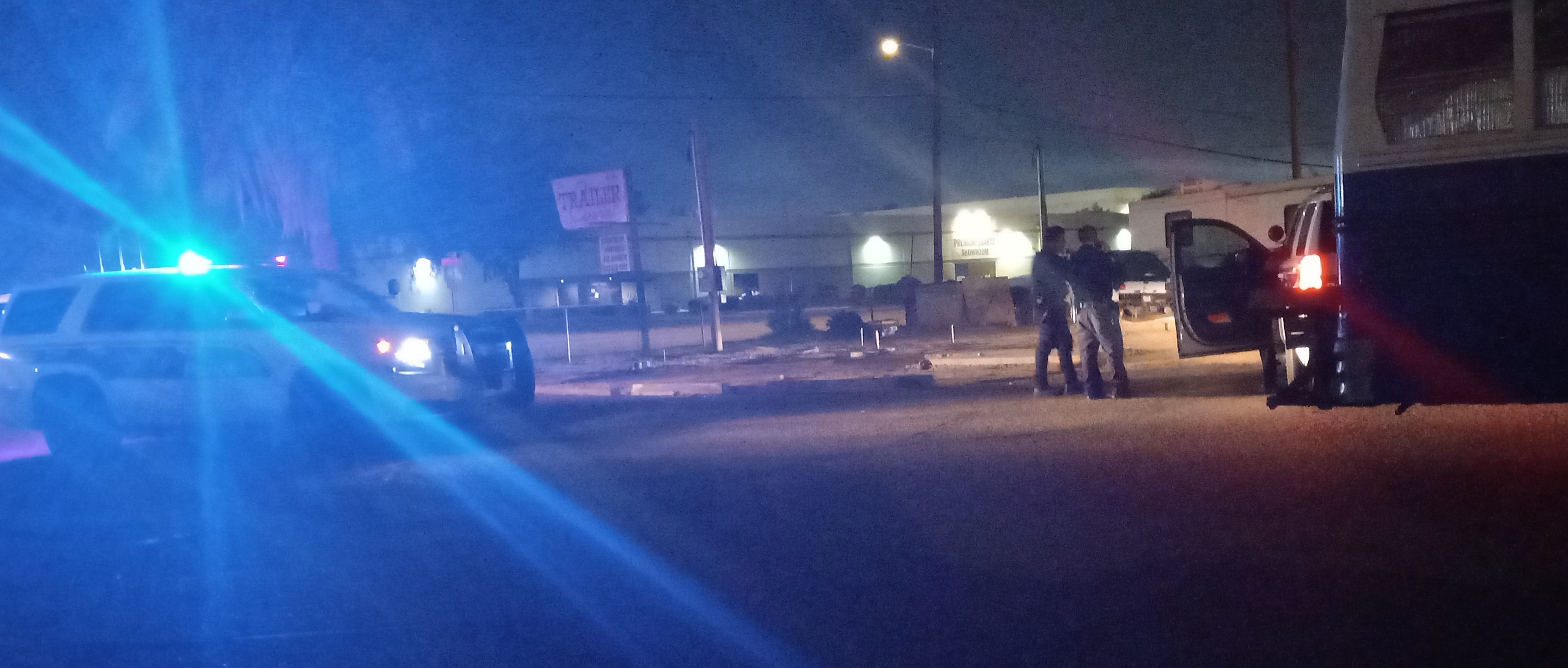 At the tail end of the police drug raid, we snapped this picture for the sake of perspective. The bus is seen on the far right, pulled off to the side to wait. Our spot is next to the rv in the background, behind the cops standing next to the open police car door.