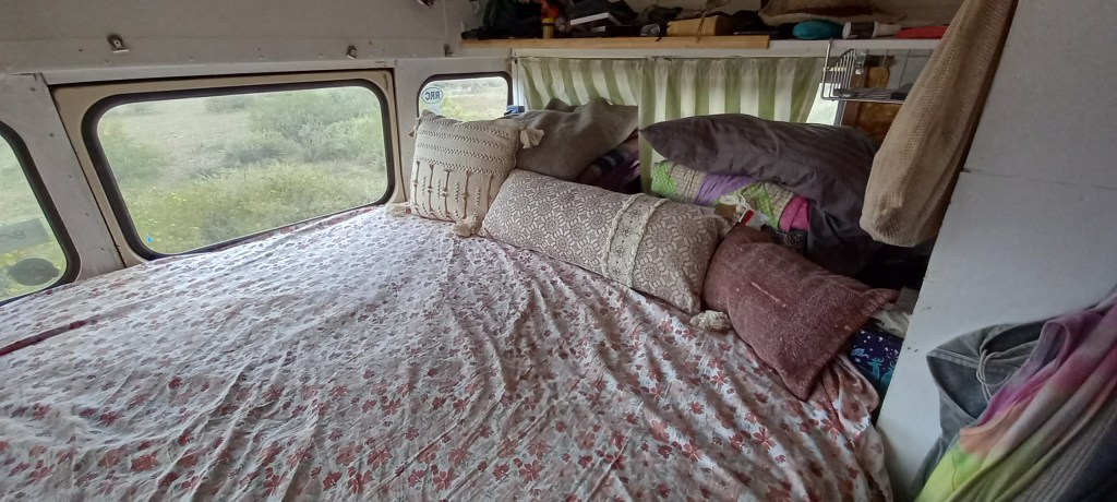 ooh.. is that At Home?? you did a great job with the decorating!!! love it so much!! great to have a savvy friend! so the cushion from dad didn’t work? the bed looks inviting and comfy too!! goodwill finds are the best! and you know how to make it work!! ππ»ππ»OMG..did the bird ruin the bus?! what a horrible noise! π±