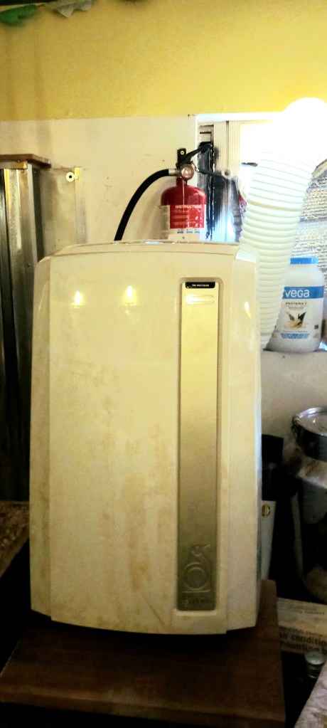 We still have our window unit that we bought for the house last year; we are considering installing it in the back over the bed to run at night. What we’ve learned from the locals is that – while the temperatures drop significantly once the sun goes down – when it’s 130Β° out during the day, it’s still going to be 90-100Β° at night. Currently we just wait until about 5 pm and then open all the windows in the back and it’s cool enough to sleep. But come June and July, the windows won’t be useful.