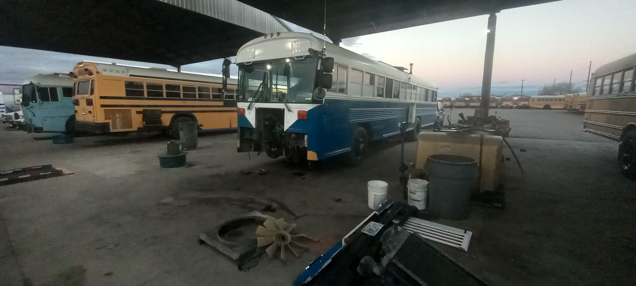 This was definitely a winter of emergency and preventative maintenance and upkeep. Back before Skooliepalooza we found out that the ball joints and tie rods were completely shot in the Jeep and needed to be replaced immediately. Later, we decided to get some work done on the bus that we had been pushing off for a while because they weren’t things that were keeping us from traveling, but would enhance our travel experience if taken care of. We had a leaky gasket that we were loosing oil out of fairly quickly, some squeaky king pins, and a radiator fan that would only come on if it felt like it… which wasn’t often enough to keep us from overheating on the seemingly-endless climbs up the mountains in Utah or up the 8-mile-long climb north on I-17 on the drive from Phoenix to Cottonwood. We were invited to go back up to Cottonwood for the whole month of April to help Josh with a bunch of projects he had lined up before Summer started. If we were going to make it over the mountains, we were going to need a fan that kicked on reliably. So we took the bus to arguably the best mechanic in the Skoolie world, Tony at AAA Bus. We had learned about Tony through another Skoolie-dweller who stopped by to say hi a year and a half ago before our first Skooliepalooza when we were living a block from Tony’s shop in the heart of inner-city Phoenix. Not many good things came from our time in that toilet bowl, but getting Tony’s contact information was one of them! Tony and his guys got the engine gasket replaced, king pins packed with grease, the entire coolant system flushed, and an override switch put on our fan. With the coolant system clean, the fan should kick on automatically to keep the engine cool while climbing, but if it doesn’t (or if I’m just being proactive and want to force it to come on before we even start the ascent) I can just pull a switch and the fan roars to life. The bus had to stay overnight in the shop because the job took two days to complete, but Tony was understanding and let us stay there in the bus instead of having to find a hotel.