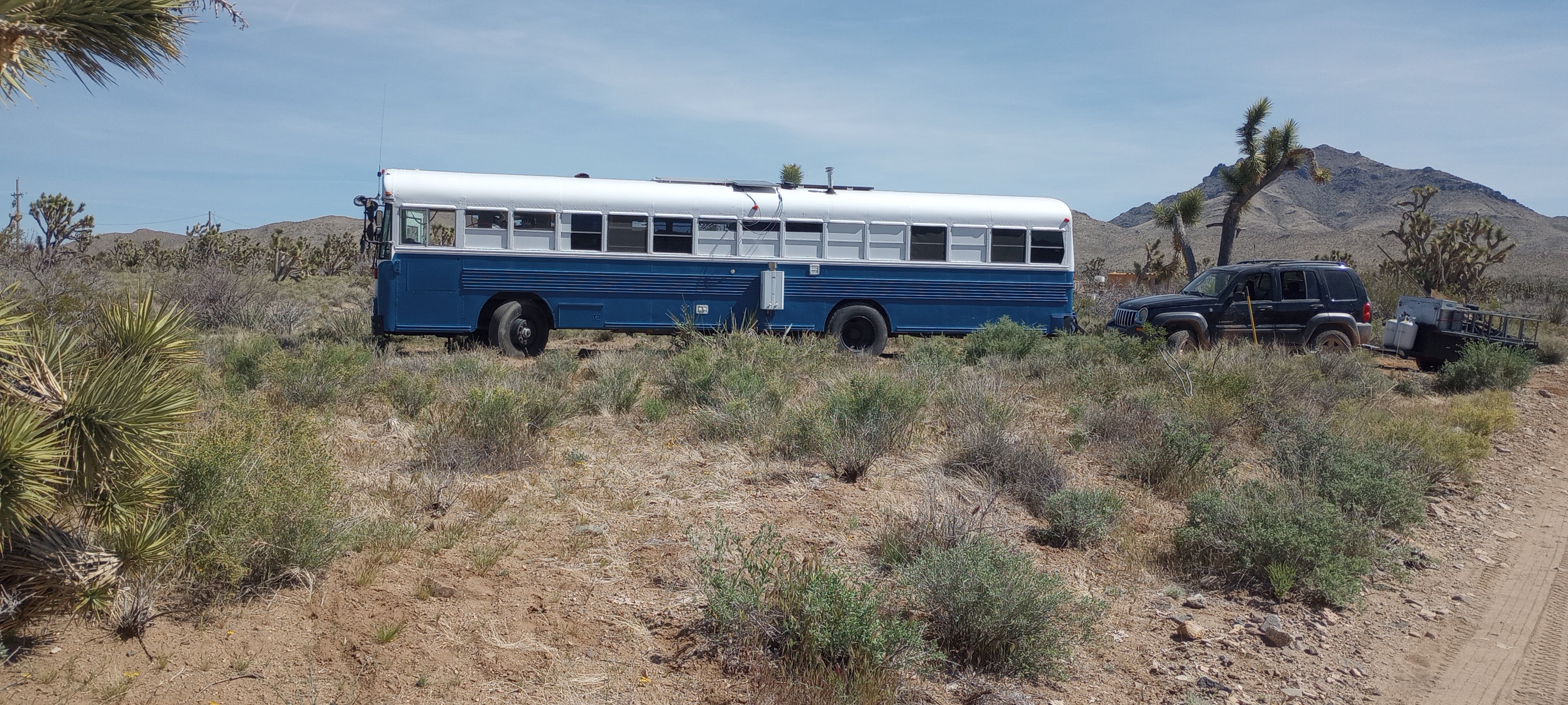 We made it across the Hoover Dam, and sometime after this (it all became a blur) we lost our radiator fan. As you might remember, back in Phoenix we had Tony, our trusty bus mechanic, install an override switch because our fan wasn’t kicking on reliably. This switch had been working GREAT and we weren’t overheating AT ALL! But the motor must have been on the fritz and with all the extra running it was doing, eventually just gave up the ghost. We weren’t able to get more than a mile or so down the road without overheating and with mountain after mountain to climb just ahead of us, we decided to call it quits for the afternoon and catch a few hours of sleep on some BLM Land right off the highway. We woke up around 4 am and headed back out knowing the only way to make it through the next day and a half would be to travel in the cold of the night so the engine could have 40 degree air rushing over it. We made it to the next town just before daybreak and stopped to reevaluate our directions. We opted for a slightly less mountainous, but longer route and tried to make it closer to Rocky Ridge Outpost. We quickly realized that we could not drive after 7 am because the sun was just too warm, so we cozied up for a bit of a nap before getting ready for an all-nighter.