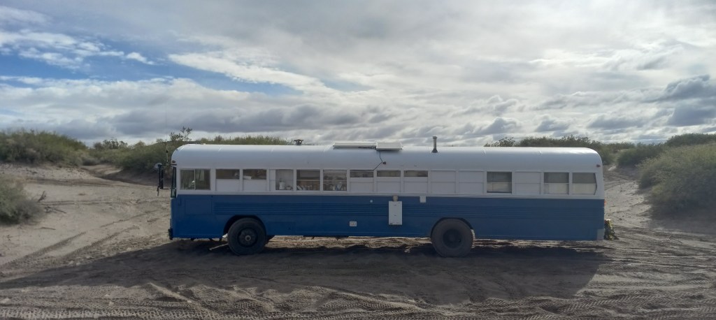 The bus has a huge 60-gallon tank! A fill-up costs about $250. Buy us a tank of fuel and we will send you a postcard from wherever the tank takes us. Be sure to leave us your address so we can send you a postcard from wherever we get to! Also, we will send a free sticker separately!